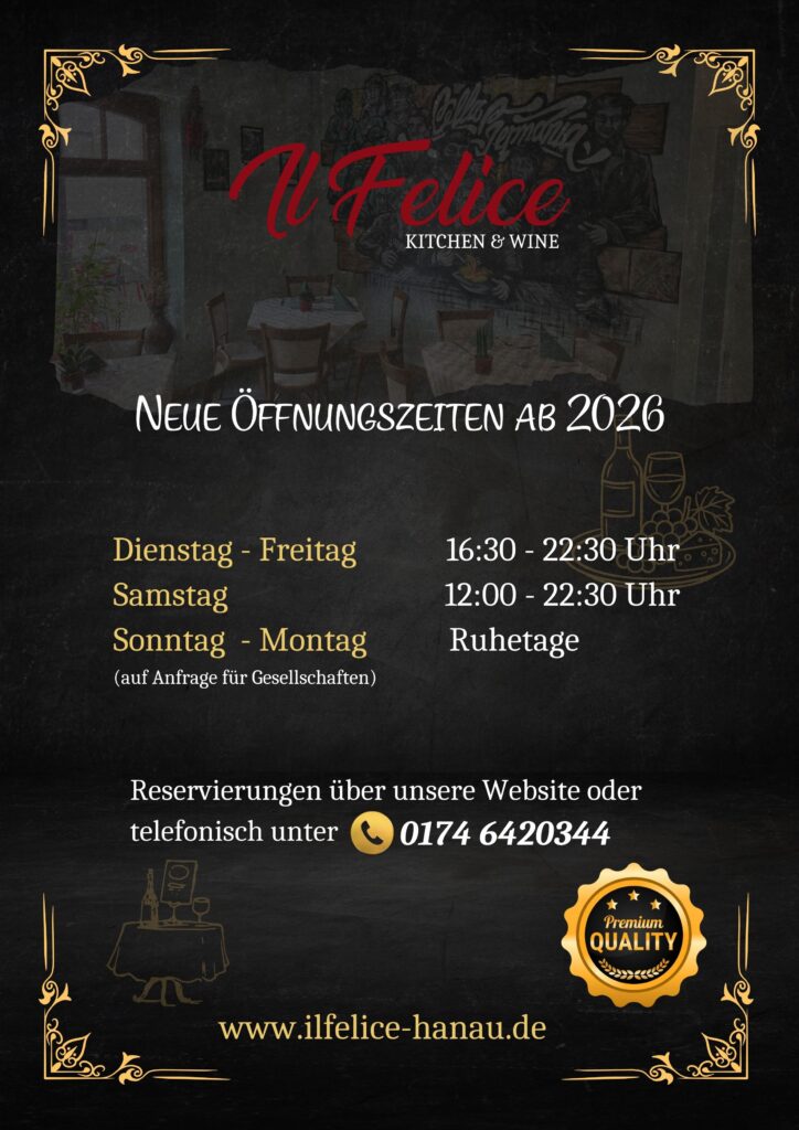 Sie möchten mit Ihrer Familie, Freunden und Liebsten einen unvergesslichen Abend mit leckeren Pizzen, frischer Pasta und sagenhaften Muschelgerichten mit den echten Geschmack Italiens erleben? Sei es bei einer guten Flasche Primitivo oder Lugana, wir erfüllen Ihnen diesen Wunsch im Il Felice liebend gerne und bereiten Ihnen einen wunderschönen Abend mit italienischem Flair.